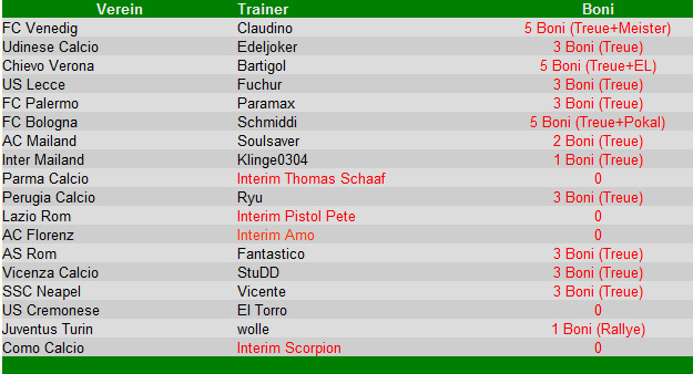 Treue- und Titelbonus gibt es wie folgt. Die Verteilung der Bonustore könnt Ihr über das Setzenformular (Liga) abgeben!